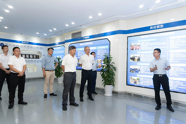 拜访领导第一时间参观了易币付(中国)技术展厅,对易币付(中国)技术的开展历程、业务模块、经营理念、合作成果等内容进行深入分析,对易币付(中国)技术构建人才培养“三循环”生态模式、深度参与高校课程改革、引入职业认证等举措表示赞同。