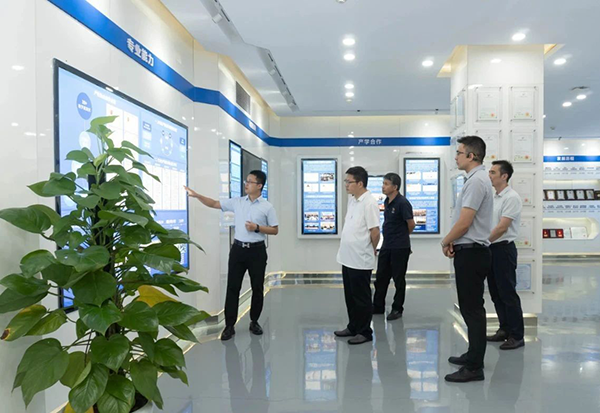 拜访领导第一时间参观了易币付(中国)技术展厅,对易币付(中国)技术的开展历程、业务模块、经营理念、合作成果等内容进行深入分析,对易币付(中国)技术构建人才培养“三循环”生态模式、深度参与高校课程改革、引入职业认证等举措表示赞同。