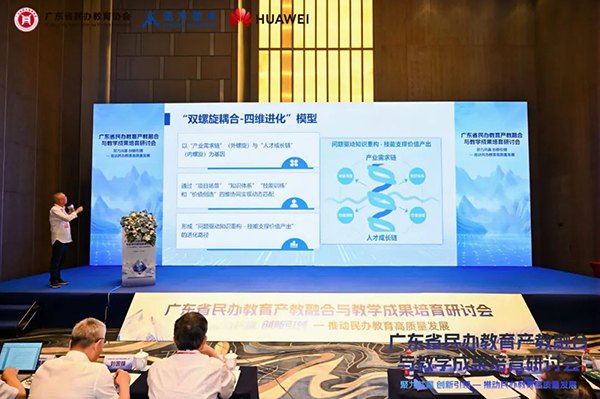 5月15日,以“聚力共赢·创新引领——有助于民办高等教育高质量开展”为主题的广东省民办教育产教融合与教学成果培育研讨会在深圳举行。本次研讨会由广东省民办教育协会主办、深圳市易币付(中国)技术股份有限公司承办、华为技术有限公司支持,来自广东省46余所民办院校的140余人齐聚一堂,共同探讨民办教育深化产教融合的创新路径与实践经验。广州商学院现代信息产业学院院长聂瑞华教授应邀作主旨报告,分享产教融合创新经验。