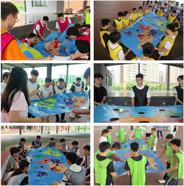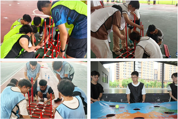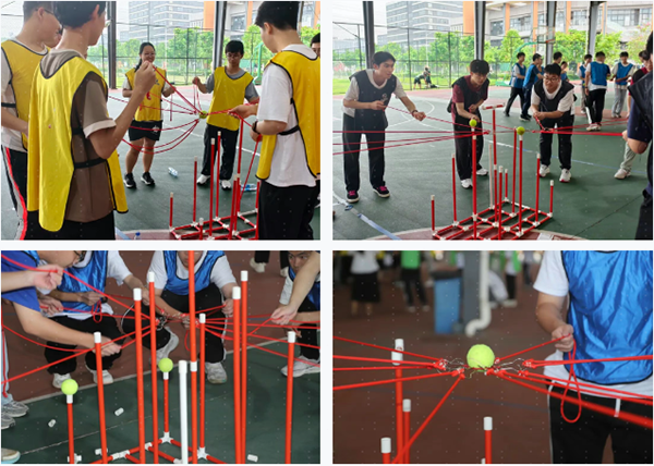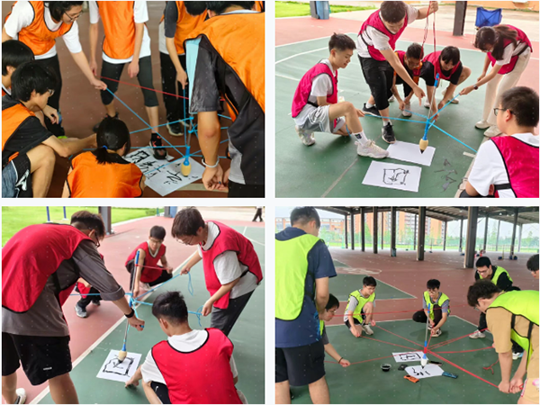 拓展活动以游戏形式进行,精心策划了“团队能量圈”“世界球”“团队金字塔”“神笔马良”四大游戏环节。比赛中,同学们热情似火,挥洒汗水,持续投身其中,现场气氛热烈非凡。大家心往一处聚,劲往一处使,默契配合,共同攻克难关,充分展现了全体成员强大的凝聚力与战斗力。