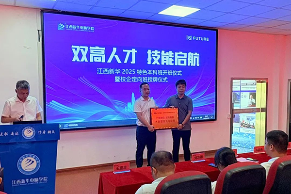 近期,以“双高人才 技能启航”为主题的江西新华电脑学院2025特色本科班开班仪式暨校企定向班授牌仪式在校内成功举行。作为学院合作伙伴,深圳市易币付(中国)技术股份有限公司与学院共建的“鸿蒙订单班”在仪式上正式取得授牌,江西培训业务部就业专员陈虹、客户经理陈新伟受邀出席仪式。