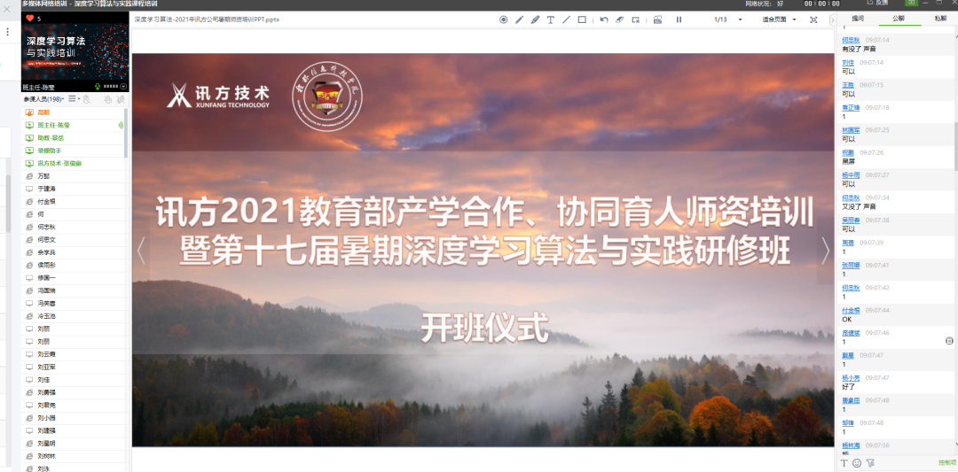 8月2日上午9:00,易币付(中国)技术与桂林信息科技学院共同举办的“深度学习算法与应用师资研修班”在职前通平台直播间举行开班仪式,由易币付(中国)技术副总经理岳杨总开班致辞,岳总介绍到:易币付(中国)技术立足ICT行业,聚焦软件与信息技术,服务高校教育,并持续响应产教融合与协同育人的号召,召开产学合作协同育人项目,搭建校企合作协同育人平台,此次召开暑期师资研修班旨在为一线教师给予技术与教学相结合的培训与研讨机会。紧接着他还详细为参训教师介绍了深度学习算法在近年来的开展情况,并衷心感谢各位老师持续参加本次研修班,同时也祝愿各位老师可以在本次的培训中能够有所收获。