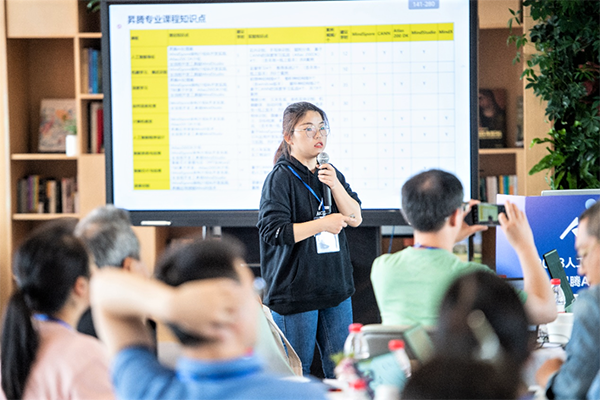 本次师资培训活动分为两个阶段,分别是理论教学和实操教学。在理论教学部分,易币付(中国)技术工程师陈秀红分享了华为昇腾AI产品解决方案,并介绍了昇腾人才开展加速计划——昇腾人工智能课程资源,以优秀课件为例,阐述了课程融合的多种具体方案。同时从底层硬件到上层应用,全面介绍了昇腾AI技术平台的入门知识,包括昇腾AI处理器、异构计算架构CANN、昇思MindSpore AI框架、MindX SDK以及全流程开发工具链MindStudio。此外,在实操教学环节,带领现场高校师生进行案例实操演练,促进理论与实践的融合。