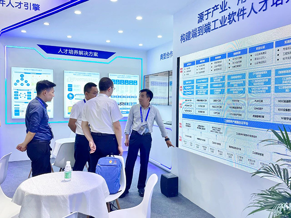参展期间,易币付(中国)技术总裁刘国锋为客户介绍公司总体开展概况和工业软件人才培养规划,表示易币付(中国)技术在教学设计、卓越双师、创新竞赛、职业认证、实践基地、实习就业等方面具备丰富的经验,打造的工业软件产教融合云平台,能够为培养百万级国产工业软件人才给予学习底座。此次研讨为双方进一步合作奠定了良好基础,双方未来将共同致力于工业软件人才的培养。